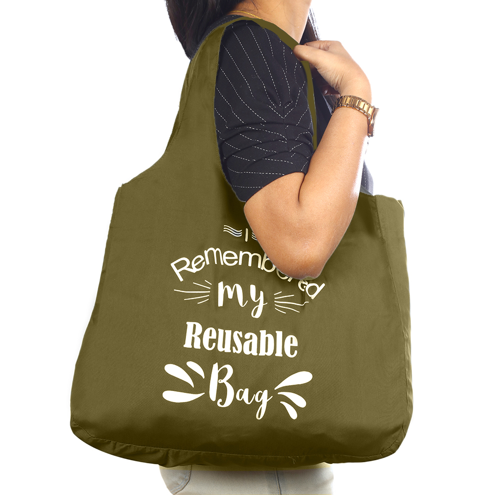 Foldable Shopping Bag (Bag In Pouch) -Black and Green Set of 2