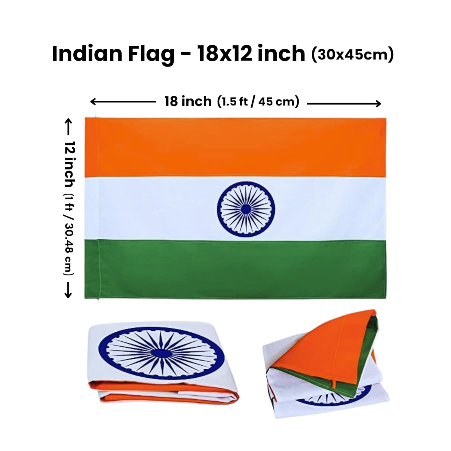 Indian Flag 18×12 Inch | Premium Quality Tiranga Tricolour for Independence & Republic Day