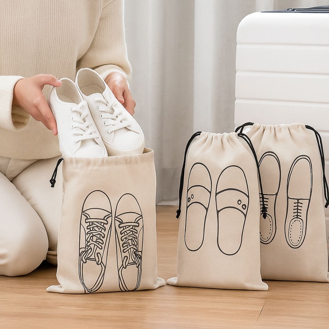 Keep your shoes fresh, organized, and protected with our breathable cotton shoe bags. These reusable drawstring shoe covers prevent dust, odors, and moisture-ideal for travel, closets, and luggage. Perfect as a shoe storage bag, cotton shoe cover, or travel shoe bag for men and women.