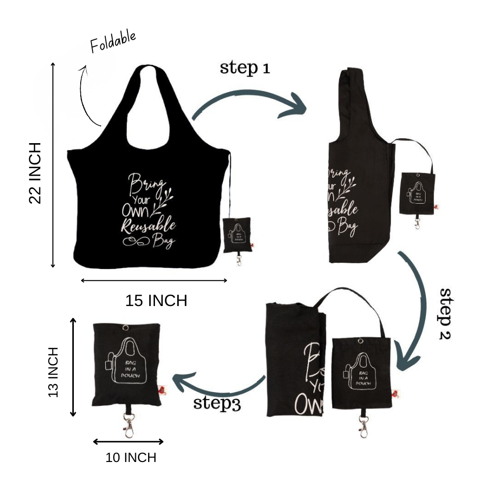 Compact Design: This portable shopping bag folds into a mini pouch, making it a compact foldable tote bag that fits in purses, backpacks, or pockets.