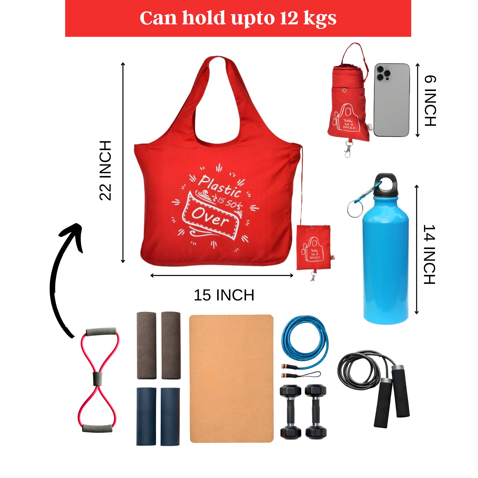 - Ideal for carrying gym, fitness, trekking, sports, yoga essentials, and groceries.
