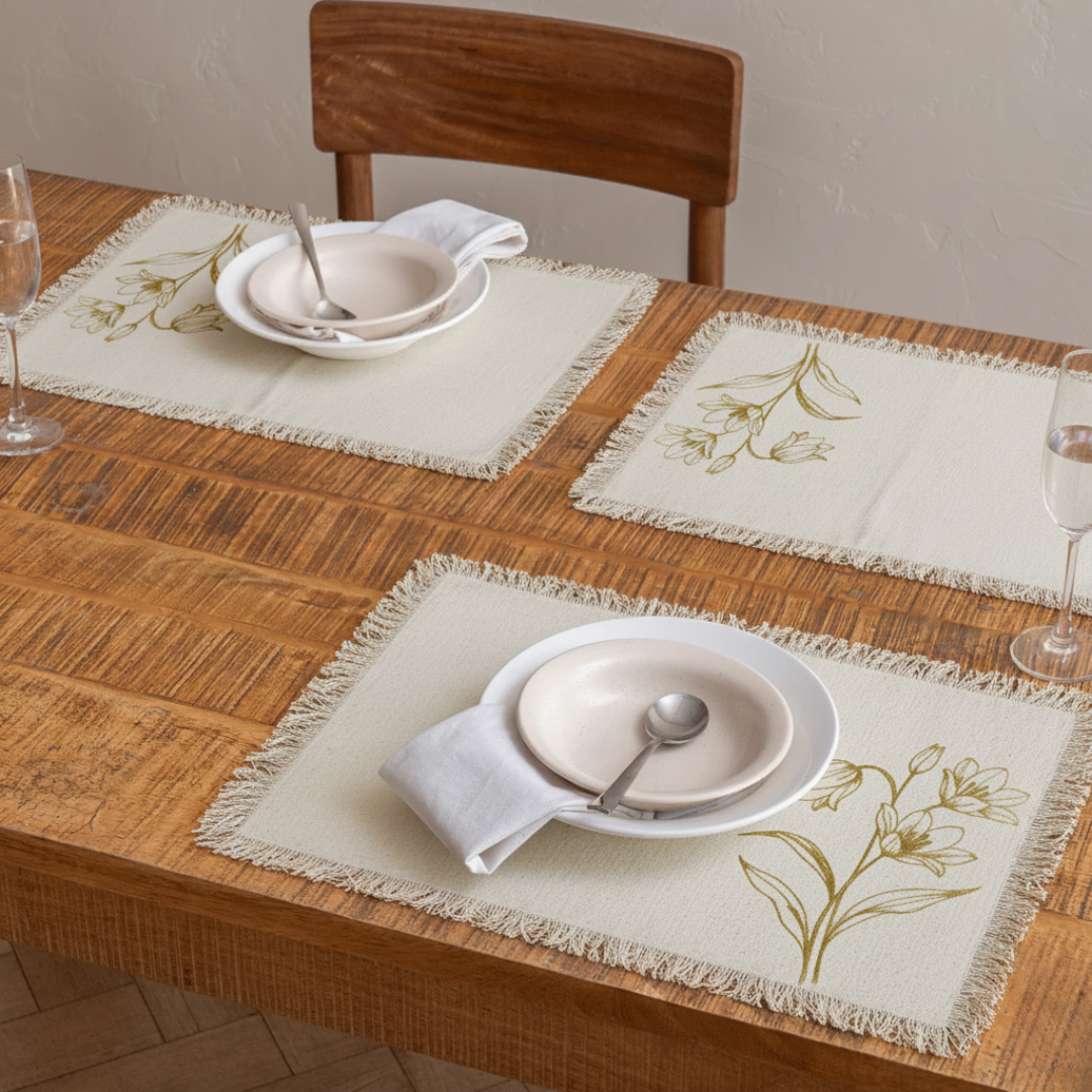 Handcrafted Fringe Border Cotton Table Runner for Dining