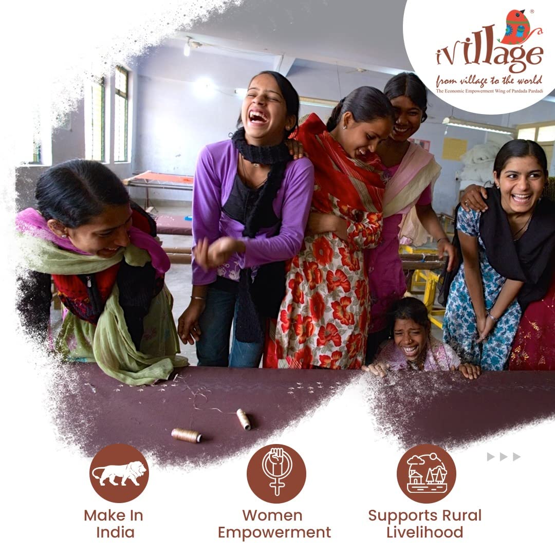 Handcrafted with love by trained and up-skilled rural women – part of our trendy collection of tote bags, gym bags, shoe covers, laptop bags, flags, and more.