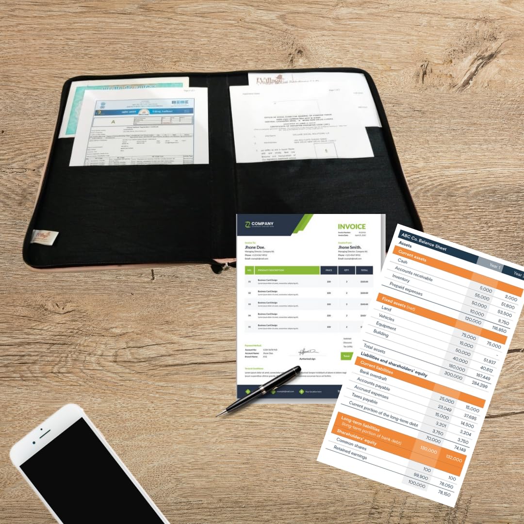 Durable Fabric Document Folder: High-quality, protective fabric cover shields documents from spills, creases, and wear.